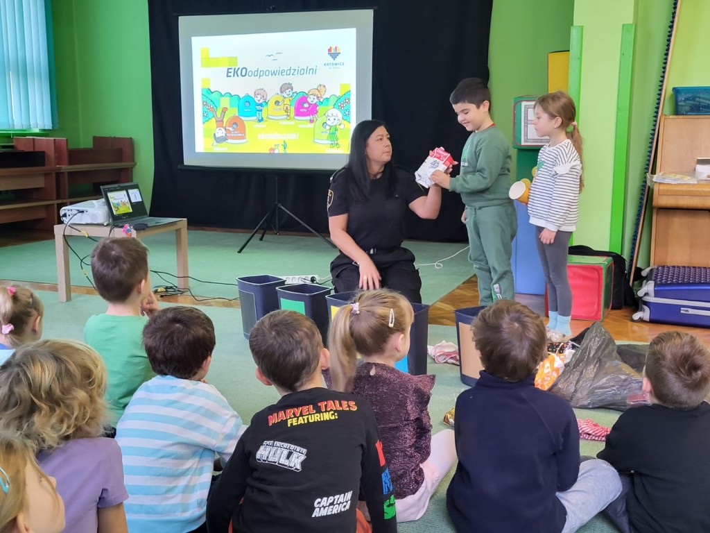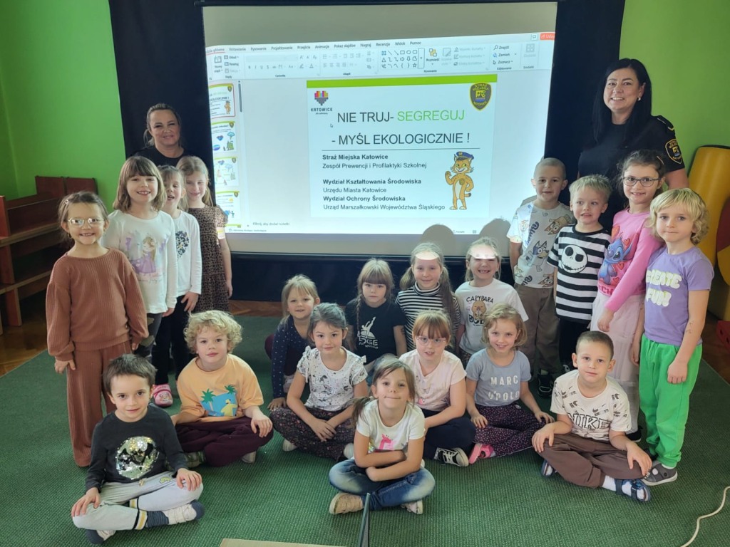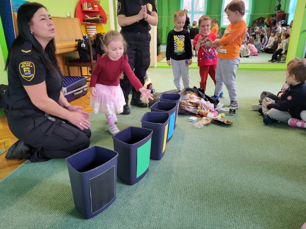 ” Nie truj , segreguj , myśl ekologicznie ” – spotkanie przedszkolaków ze Strażnikami Miejskimi .