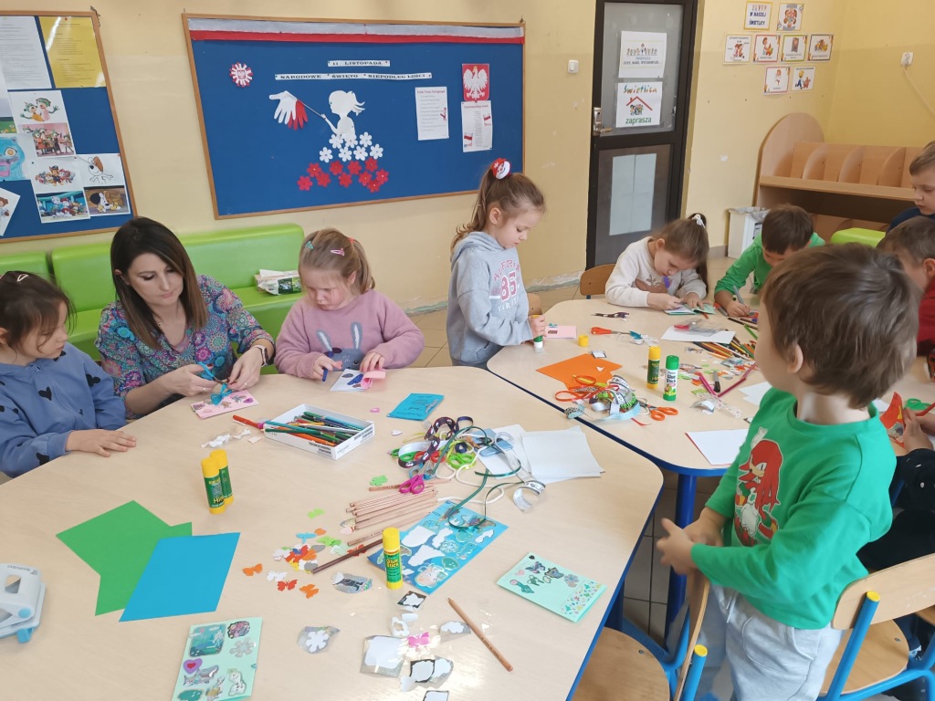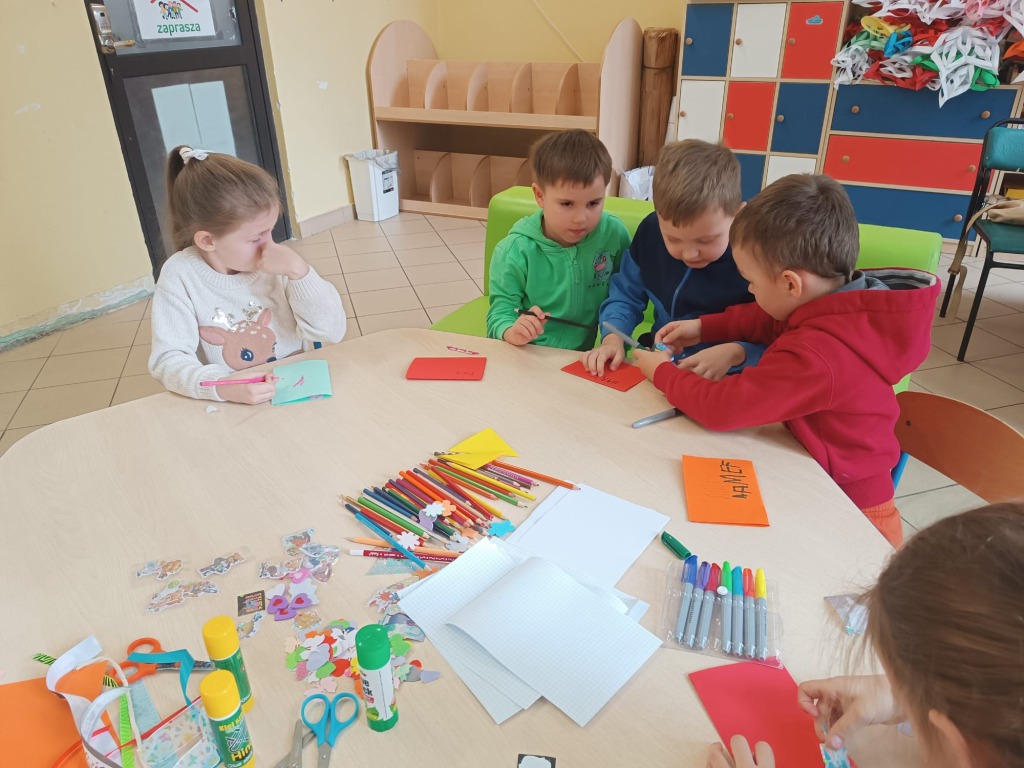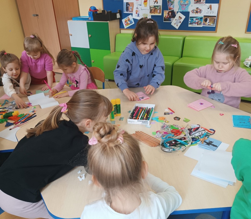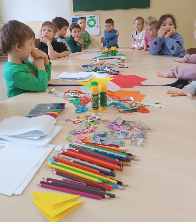 Delfinki na zajęciach plastycznych w świetlicy szkolnej .